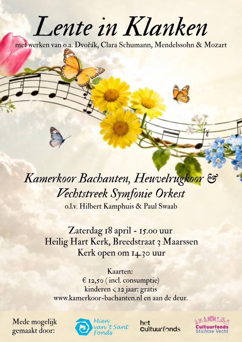Concert van Bachanten, Heuvelrugkoor en VechtStreek Symfonie Orkest - zaterdag 18 april 15-17 uur in de Heilig Hartkerk in Maarssen